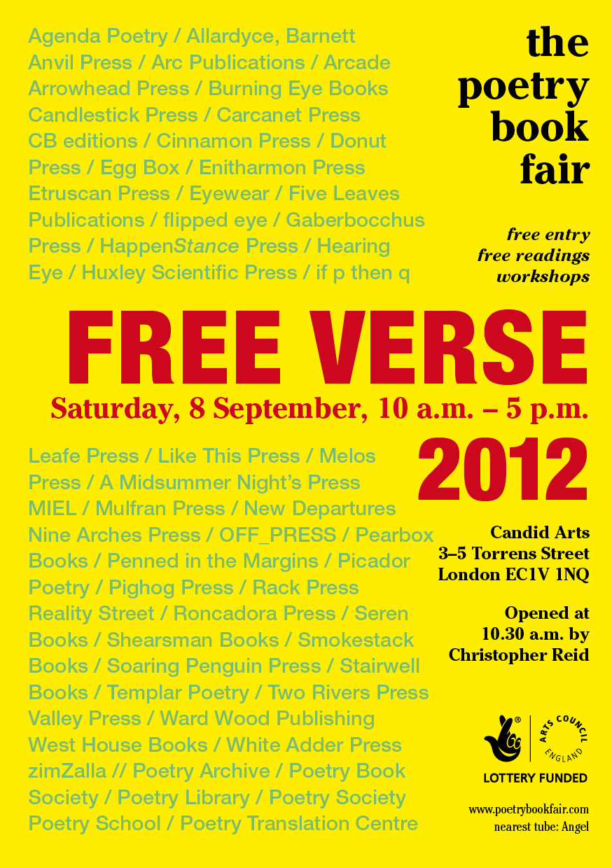 Here is a flier for the Free Verse book fair and remember that if p then q is putting on a night of 6 of its readers at 7 at The Betsey Trotwood (flier of that a few posts below and detailed biographies of those readers underneath).